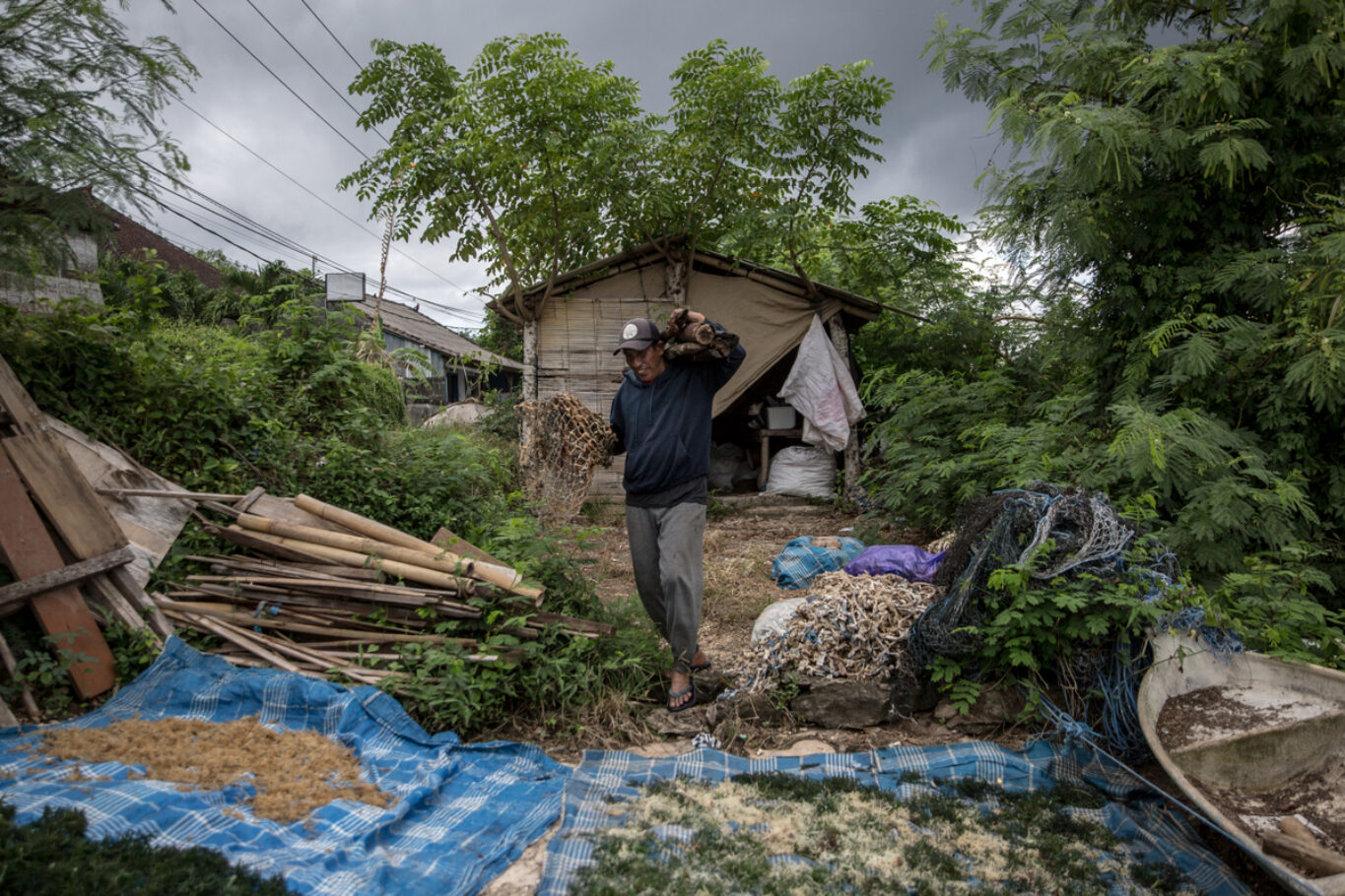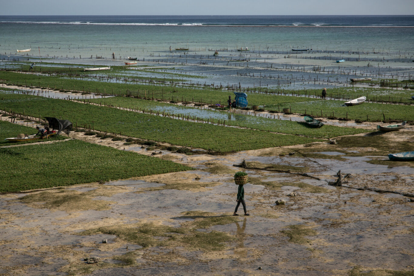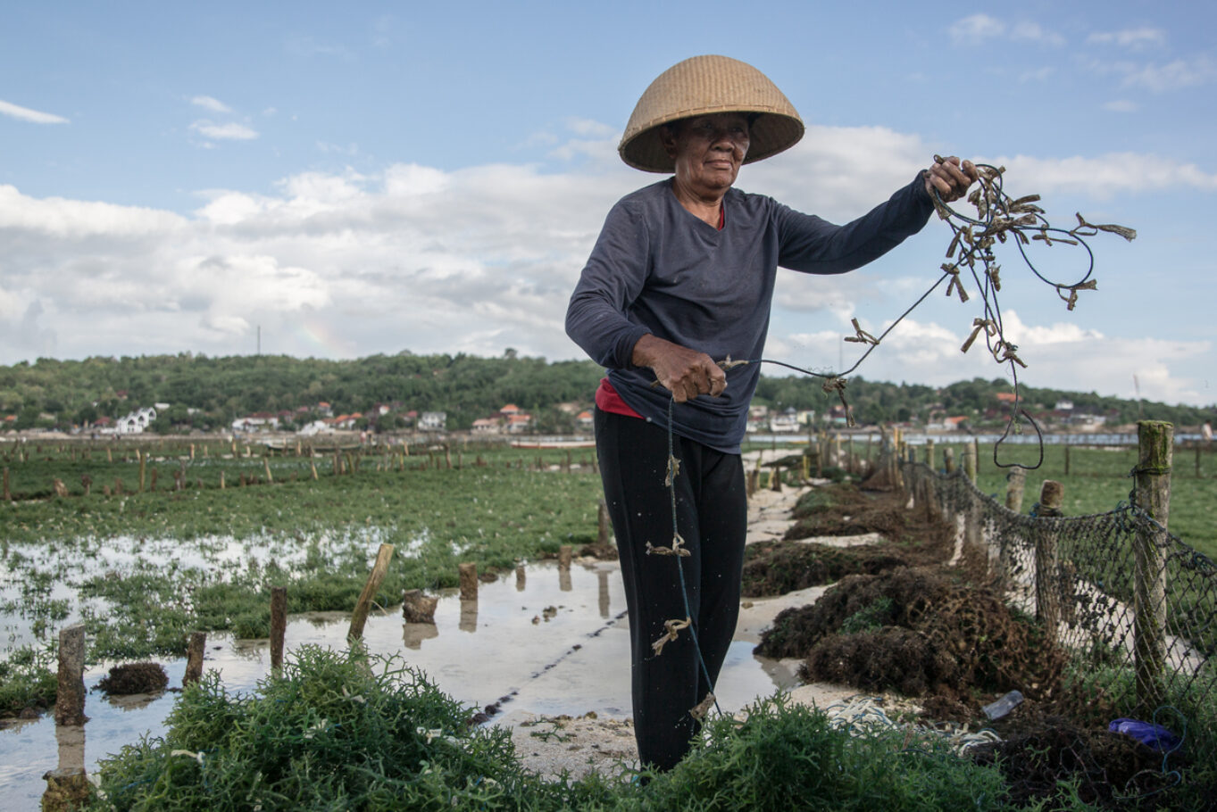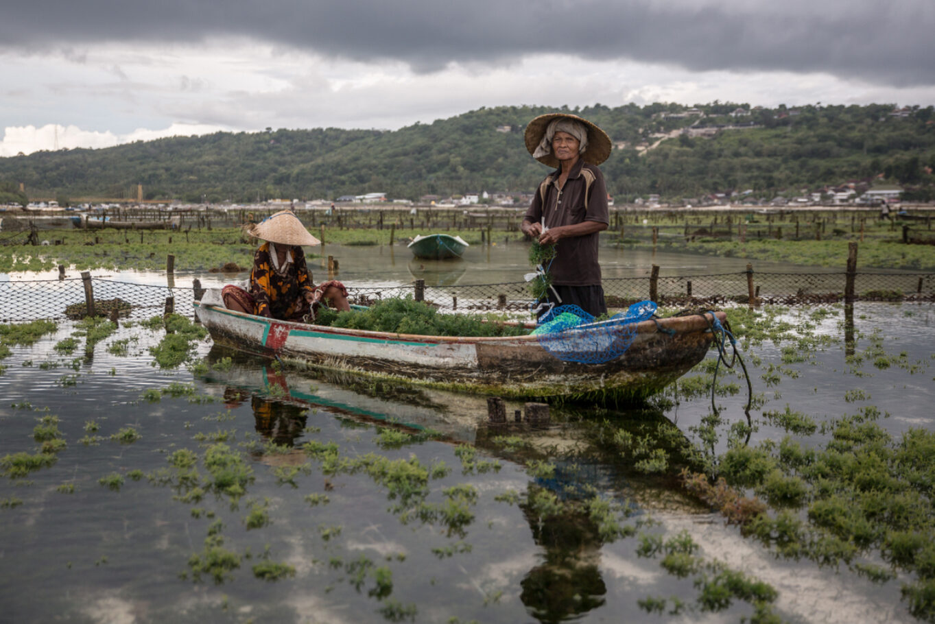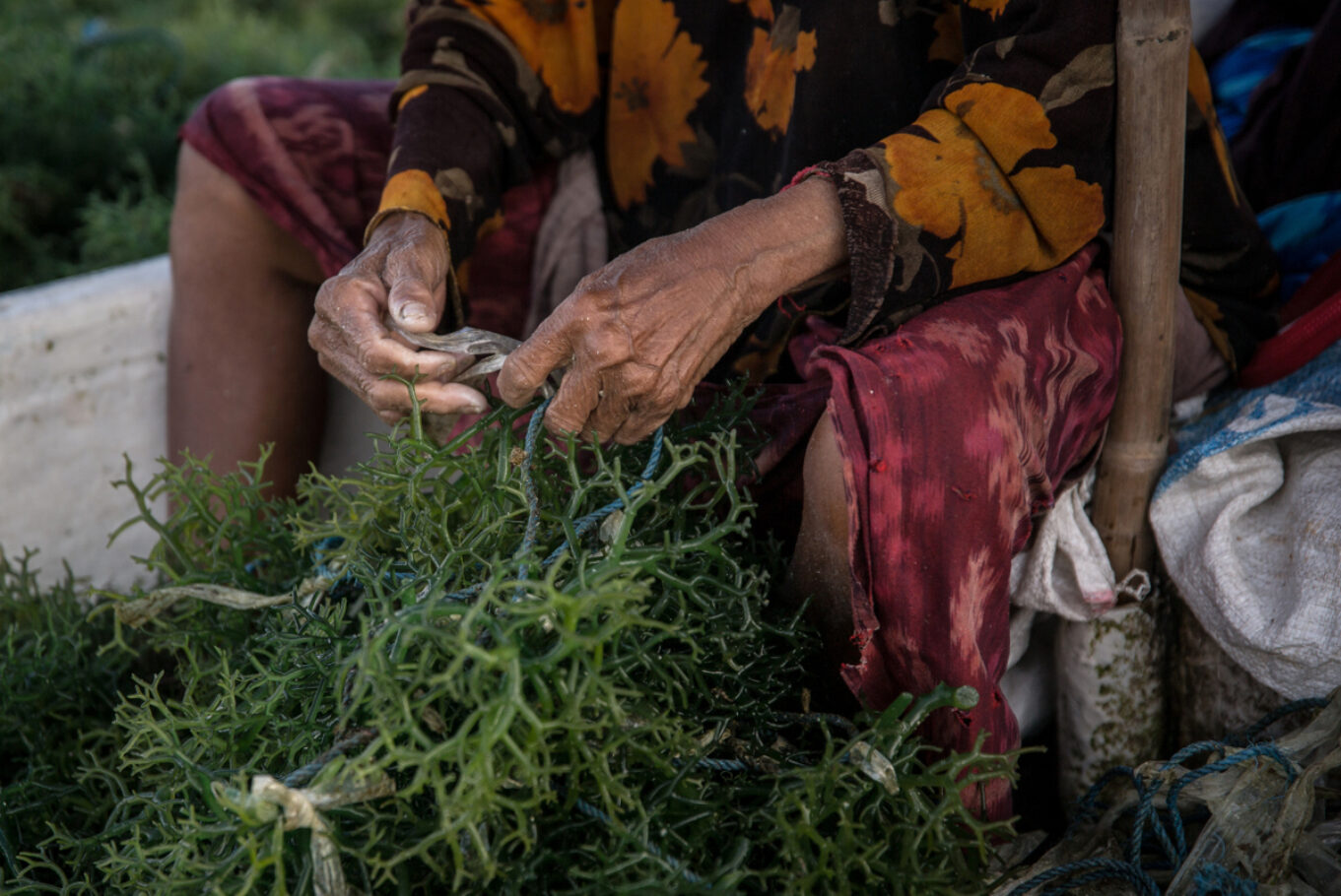 A tengeri alga (avagy moszat) termesztése új erőre kapott a Balihoz tartozó Lembonganon a Covid-időszakot követően, és ma már közel 800-1000 ember él a különféle termékek alapanyagául szolgáló, igen magas tápértékkel rendelkező élőlény telepeinek szakszerű működtetéséből a szigeten. A gondozás és a betakarítás apálykor zajlik, főleg idősebb, tapasztalt nők végzik, de akadnak a dolgozók közt lelkes fiatalok is. Az algát szárítják, a napsütés és a szél segítségével tartósítják ősi szokás szerint. (A sorozat a Lembongan és Ceningan szigete közti szorosban készült 2025 májusában.)